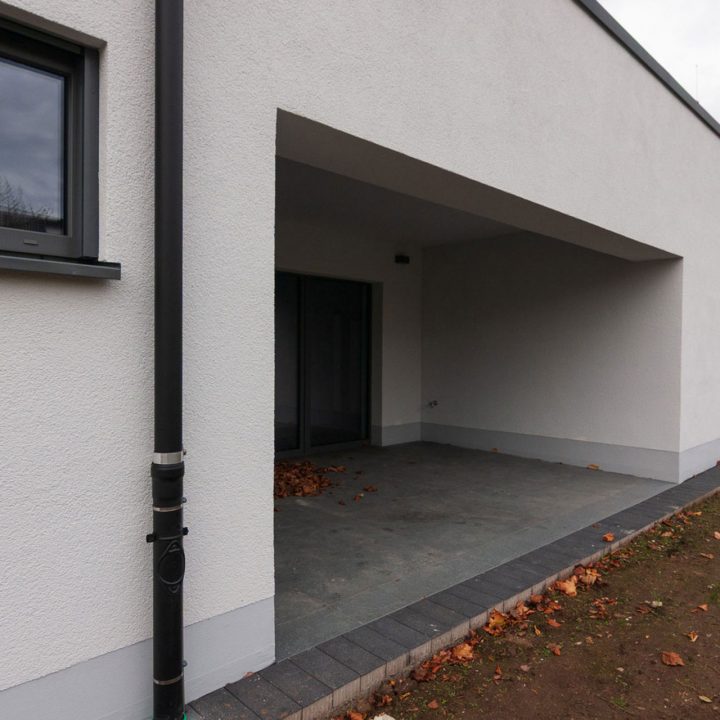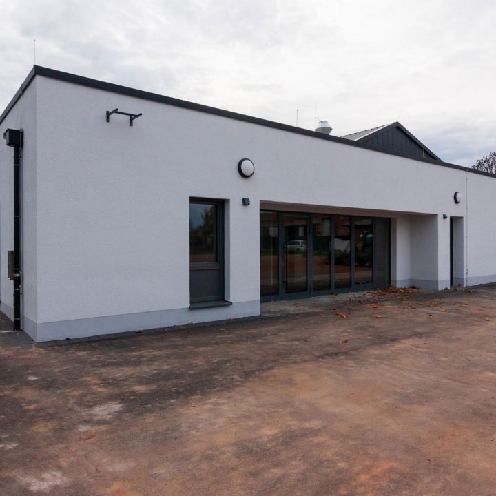 Das äußere Erscheinungsbild des Gebäudes folgt einem klaren, reduzierten Entwurf: horizontale Linien, eine zurückhaltende Farbgebung und präzise gesetzte Öffnungen betonen die Funktionalität und Wertigkeit der Architektur. Der Neubau fügt sich harmonisch in die bestehende Umgebung ein und bildet gleichzeitig ein deutlich erkennbares, modernes Zeichen für die öffentliche Daseinsvorsorge in Frankenberg.
