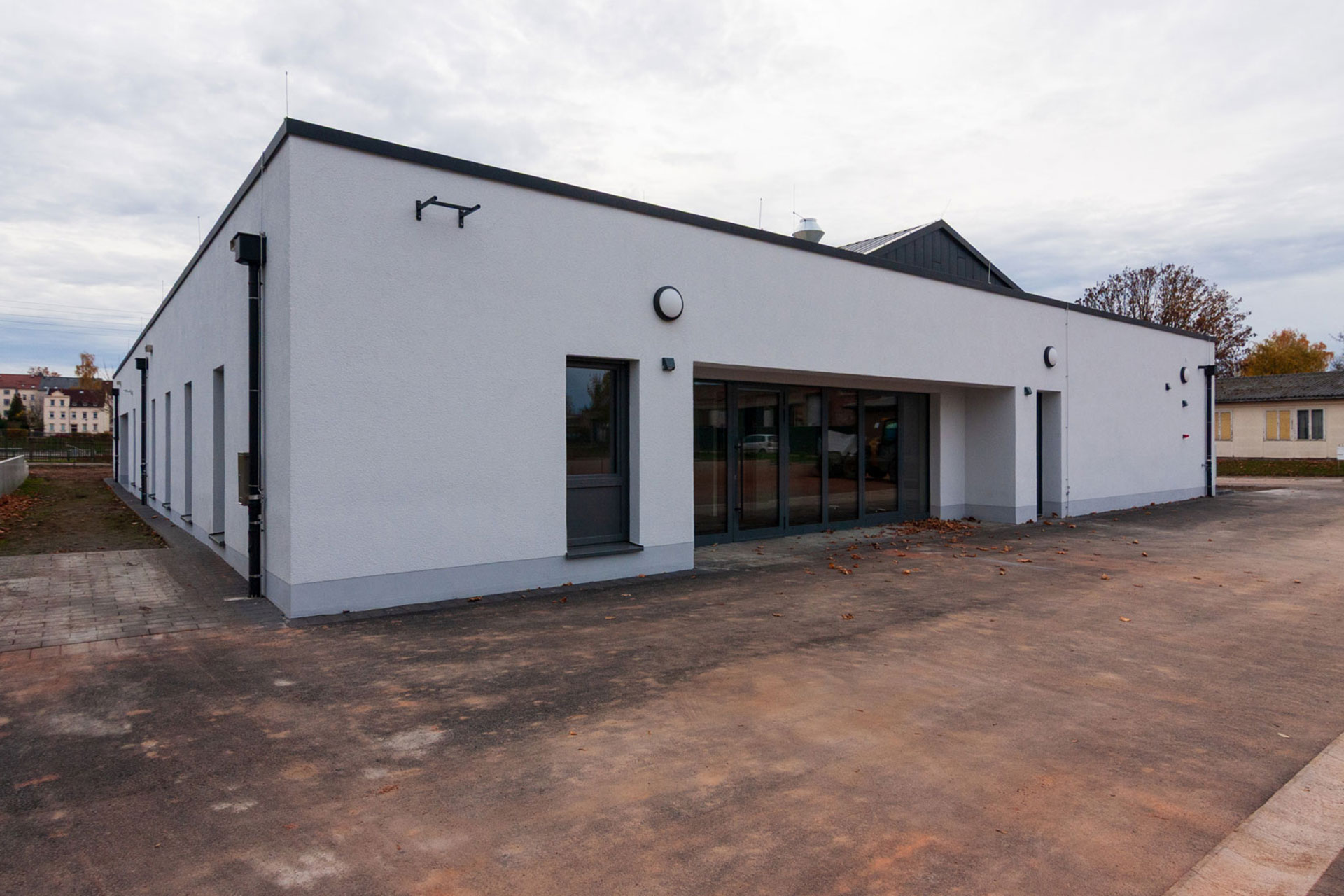 Das äußere Erscheinungsbild des Gebäudes folgt einem klaren, reduzierten Entwurf: horizontale Linien, eine zurückhaltende Farbgebung und präzise gesetzte Öffnungen betonen die Funktionalität und Wertigkeit der Architektur. Der Neubau fügt sich harmonisch in die bestehende Umgebung ein und bildet gleichzeitig ein deutlich erkennbares, modernes Zeichen für die öffentliche Daseinsvorsorge in Frankenberg.