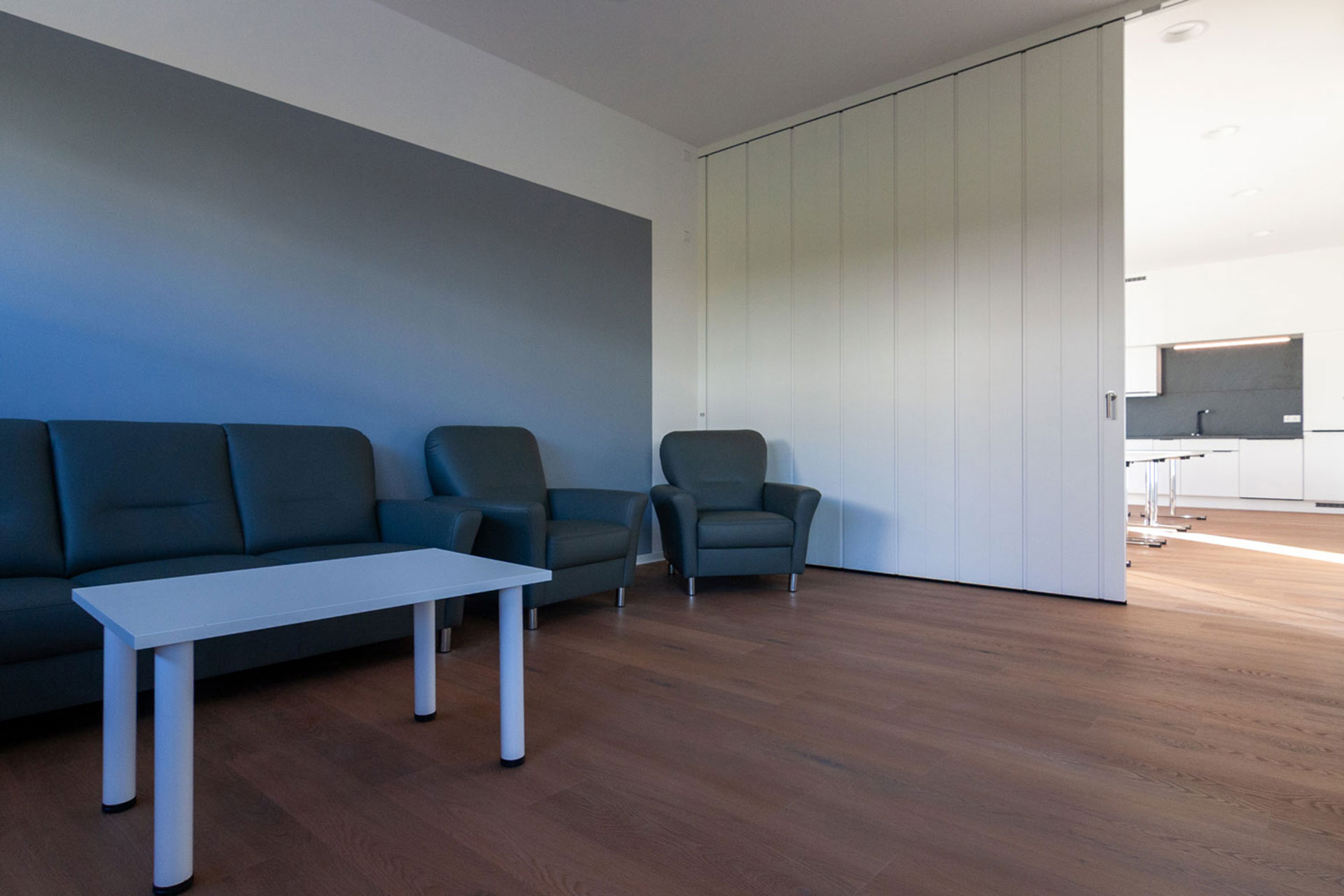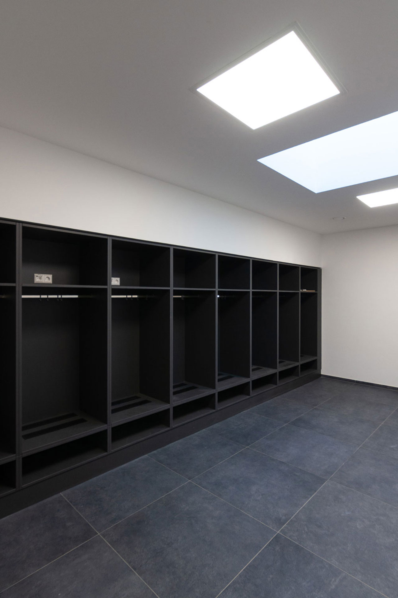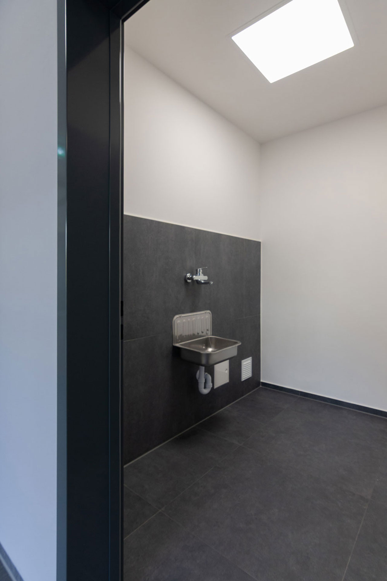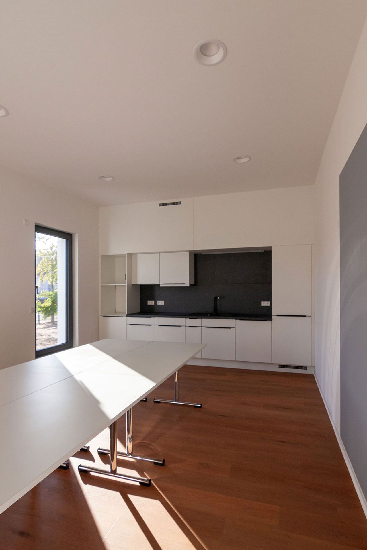 Besonderes Augenmerk galt der effizienten Organisation von Abläufen im Alltag des Rettungsdienstes. Kurze Wege, funktionale Raumfolgen und eine klare Trennung von Einsatz- und Ruhebereichen sorgen für optimale Arbeitsbedingungen. Großzügige Fensterflächen und eine helle Materialwahl schaffen eine angenehme Atmosphäre für das Personal, das hier 24 Stunden täglich im Einsatz ist.